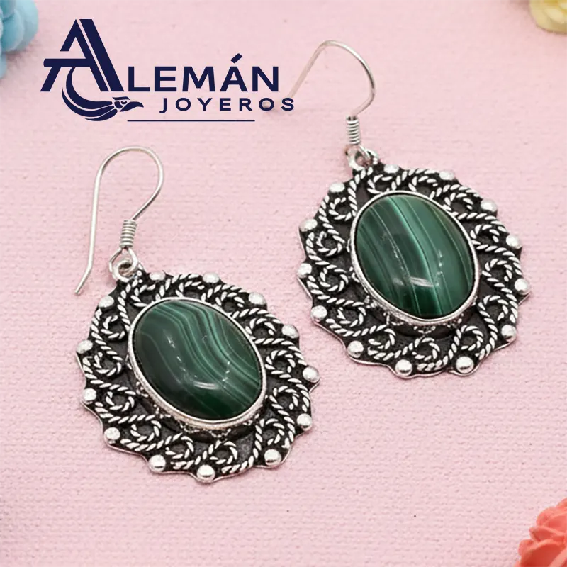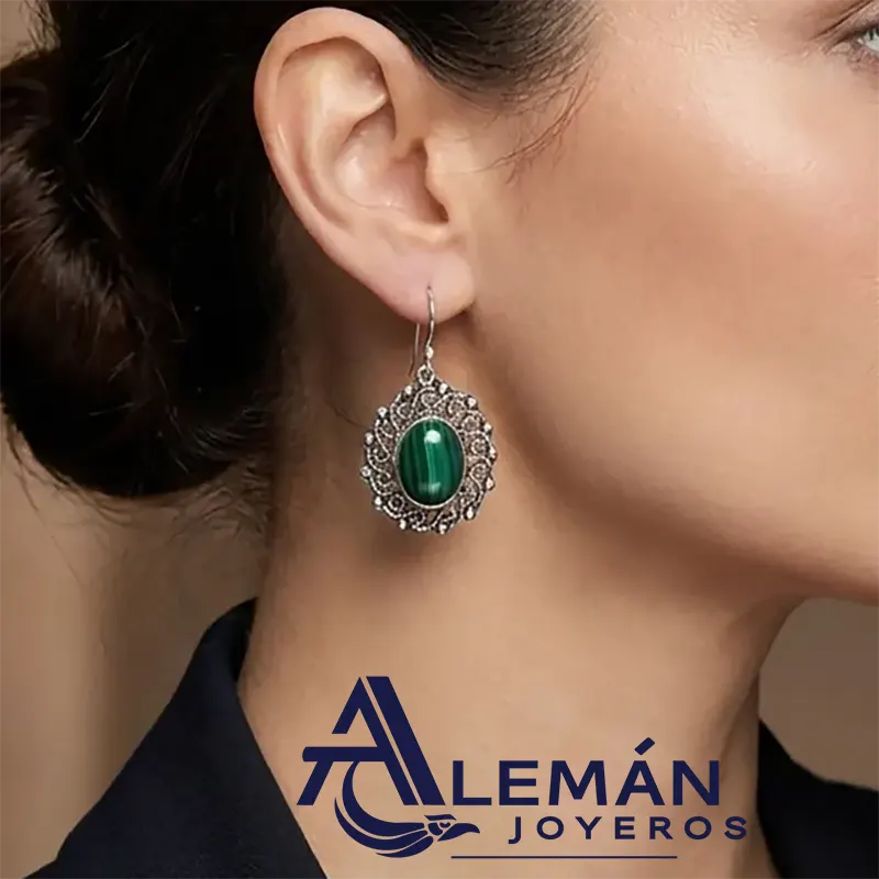 Ir a la tiendaAretes de plata .925 modelo "Barroco Verde"